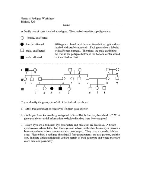 Web Genetics Pedigree Worksheet Answer.