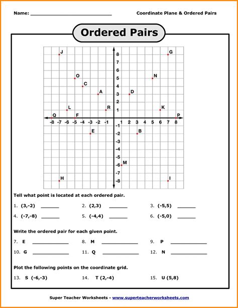 Ordered pairs add to my workbooks (38). Ordered pairs are located on a a coordinate plane. Printable math worksheets @ www.mathworksheets4kids.com name :